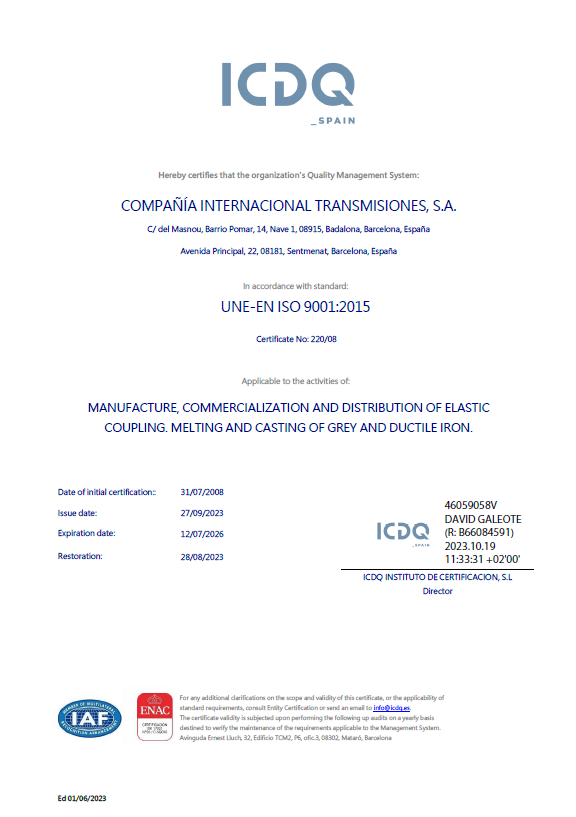 Diseñamos, fabricamos y suministramos acoplamientos industriales. Con nuestra oficina técnica, fundición y mecanizado.