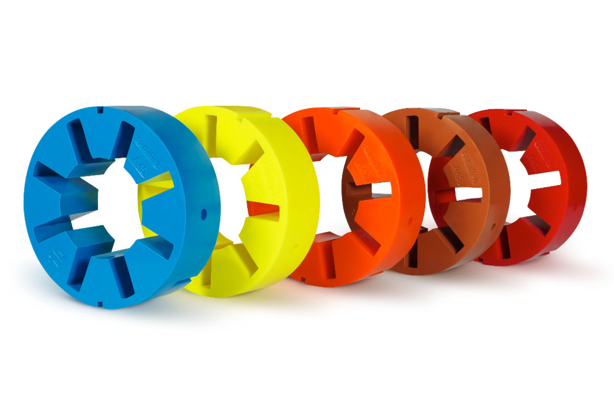 Inserto elástico para los acoplamientos Samiflex, capaces de soportar temperaturas de -40º a hasta 140º.