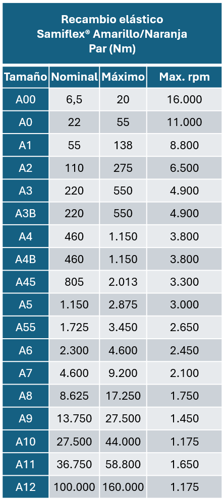El inserto elástico naranja Samiflex® tiene una dureza estándar (95 Shore A).